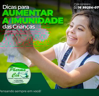 Na Pharma & Cia, temos uma linha de suplementos infantis de qualidade, desenvolvidos para fornecer os nutrientes que os pequenos precisam. Vitaminas como C e D, probióticos para fortalecer a flora intestinal e suplementos de cálcio para a saúde dos ossos são alguns dos produtos que indicamos. Além disso, nossa equipe pode orientar sobre práticas de higiene e cuidados que ajudam a evitar doenças, especialmente em épocas de clima frio.
