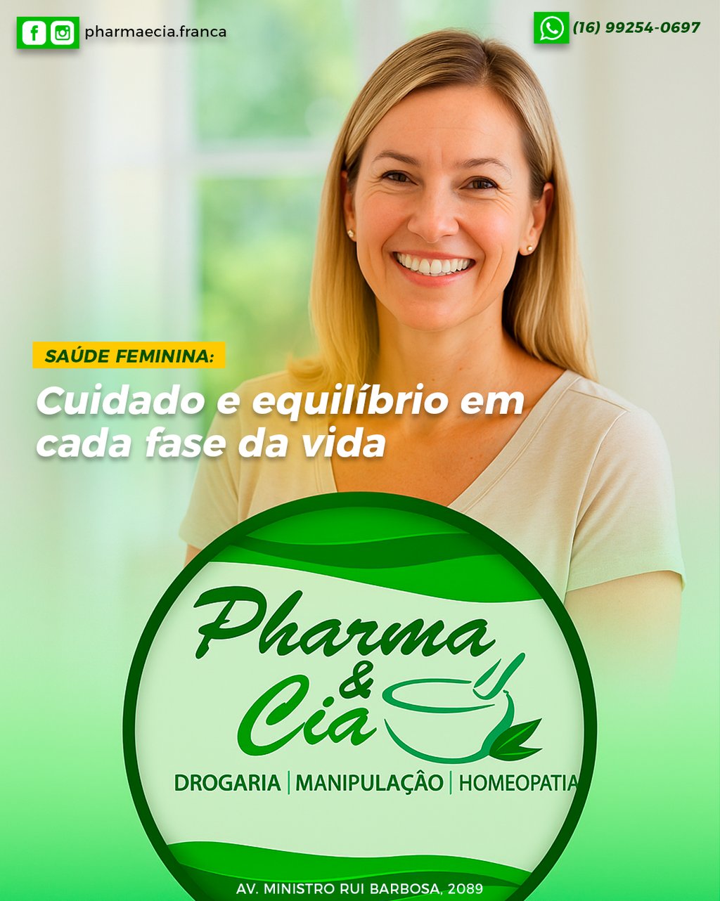 Na Pharma & Cia, desenvolvemos fórmulas específicas para as necessidades femininas, com o acompanhamento do Dr. Wilson Rigoni, garantindo que cada mulher seja tratada de forma única, natural e segura. Temos soluções para ansiedade, insônia, retenção de líquidos, cólicas, ondas de calor, entre outras condições comuns.