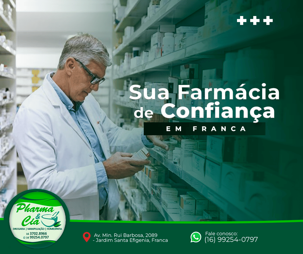 Com mais de 25 anos de tradição em Franca, a Pharma & Cia é o seu destino confiável para medicamentos manipulados e muito mais. Nossa equipe é altamente qualificada e comprometida em oferecer produtos de alta qualidade e seguros. 📅💊